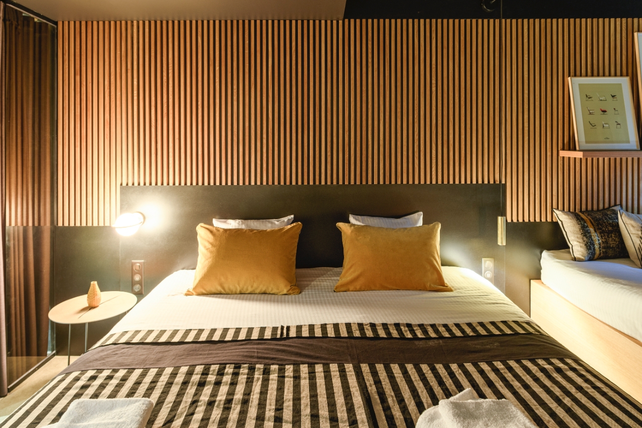 Premium for 4 : Space, warm decoration and absolute comfort in these rooms designed to accommodate four people : 2 adults and 2 kids. (4 pax, 26-34m2, 1 double/twin + 2 bunk beds)